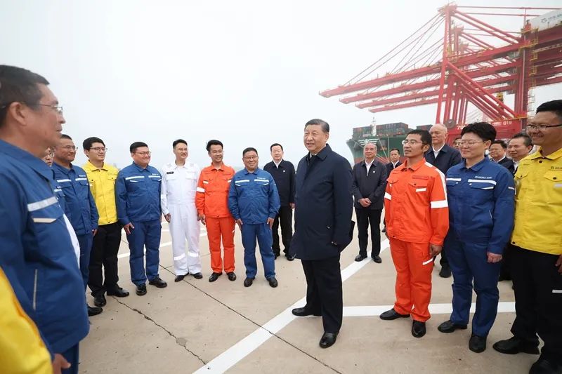 5月22日至24日,中共中央總書記、國家主席、中央軍委主席習(xí)近平在山東考察。這是22日下午,習(xí)近平在日照港親切慰問港口科技工作者、運(yùn)營人員、航運(yùn)人員。