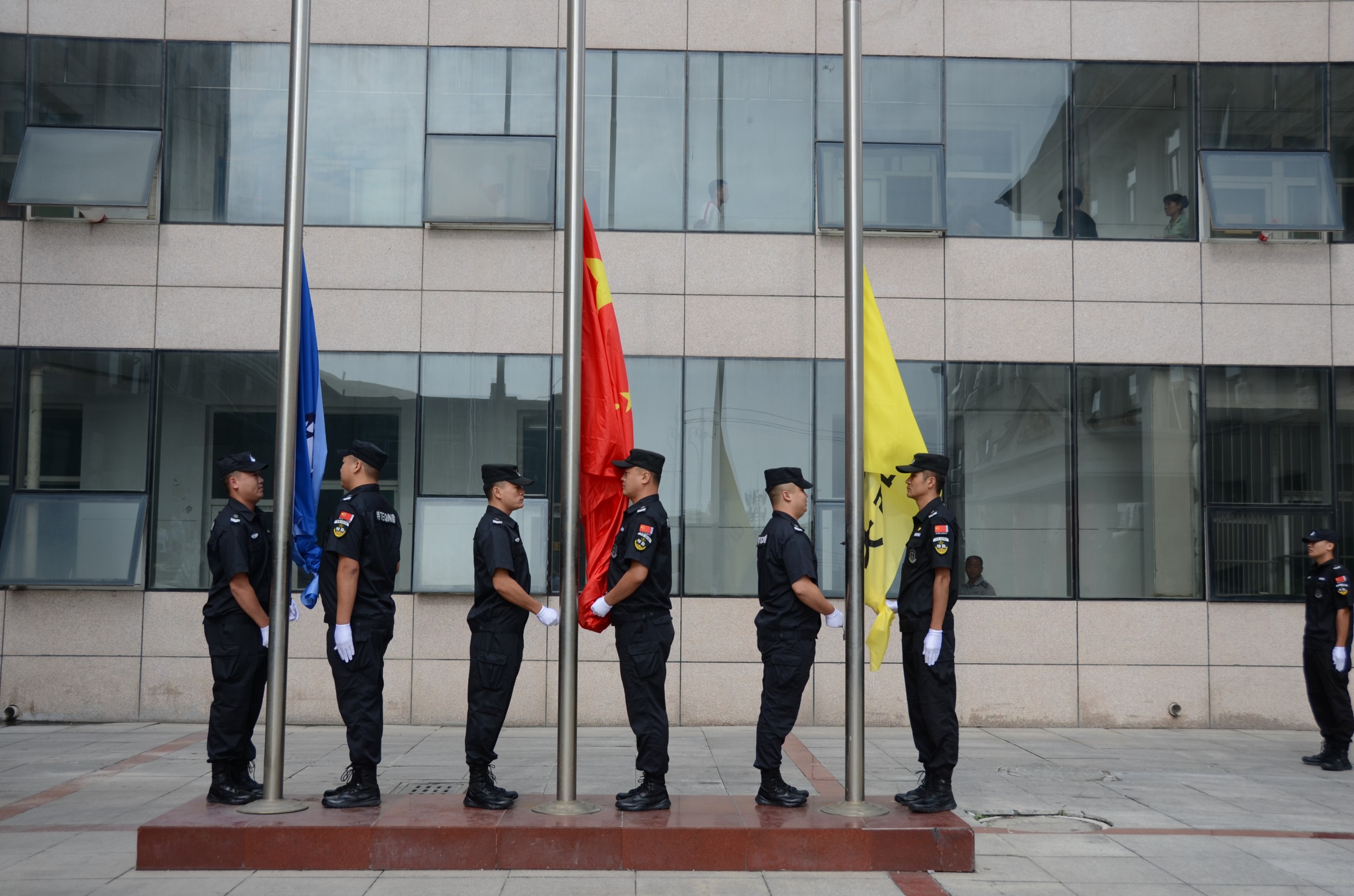 8月18日上午,在山西大正保安服務(wù)(集團(tuán))有限公司喬遷新址之際,舉行了盛大的揭牌儀式。儀式上,首先伴著《義勇軍進(jìn)行曲》的響起,全體人員行注目禮,莊嚴(yán)肅穆,旗手們著裝整齊,邁著矯健的步伐,護(hù)著鮮艷的五星紅旗入場舉行升國旗儀式。市國資委主任吳瑞峰、黨委書記劉晉生、紀(jì)檢書記岳玉亮、調(diào)研員劉建文等領(lǐng)導(dǎo)同志出席,公司黨委書記、董事長、總經(jīng)理張躍生攜黨政領(lǐng)導(dǎo)班子,以及機(jī)關(guān)各單位員工、基層單位員工代表共300余人參加了揭牌儀式。揭牌儀式甴公司黨委副書記、董事、副總經(jīng)理陳志平同志主持。
