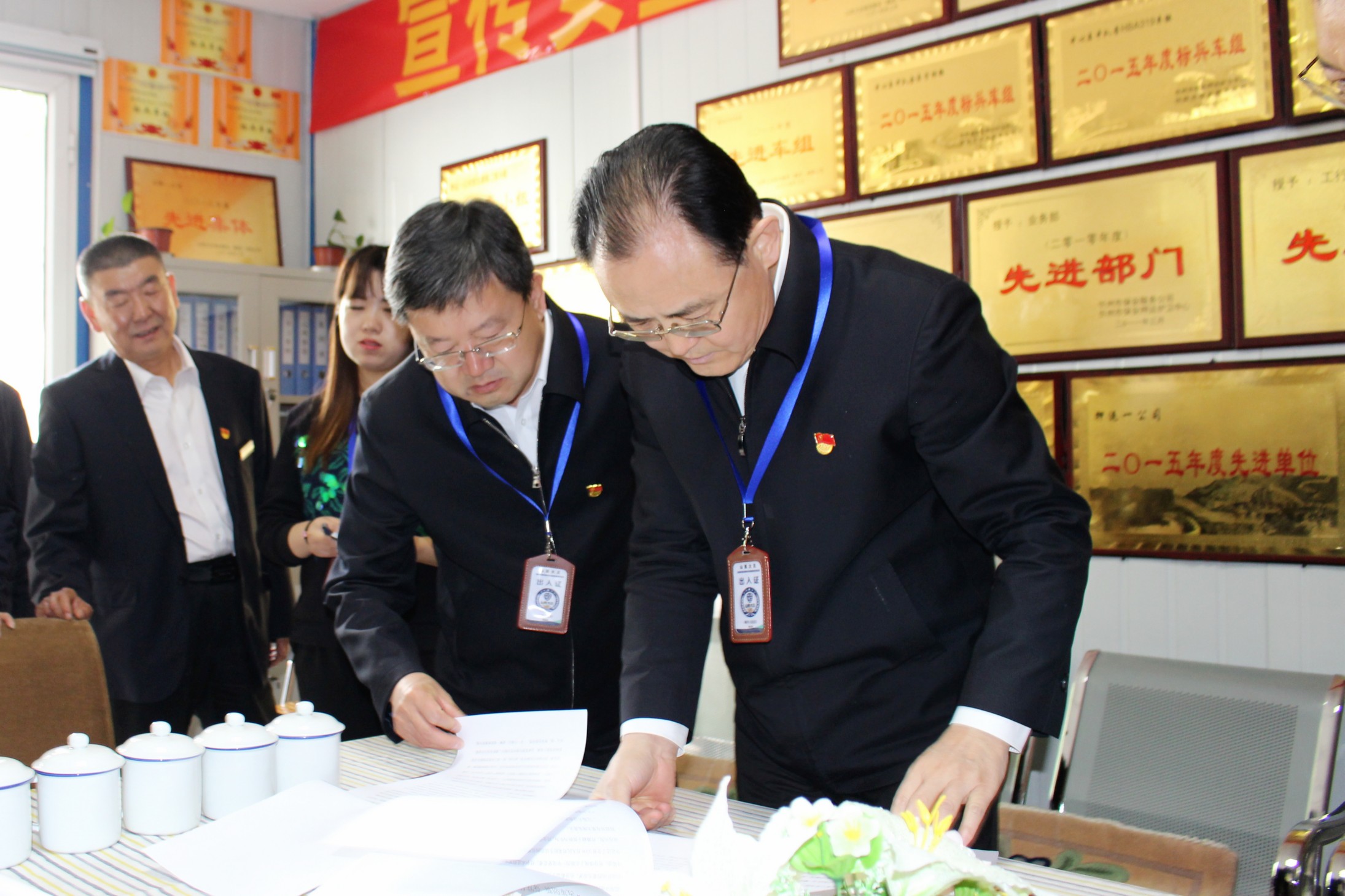 山西省人大常委會(huì)副主任、忻州市委書記李俊明在認(rèn)真查看公司黨員學(xué)習(xí)筆記