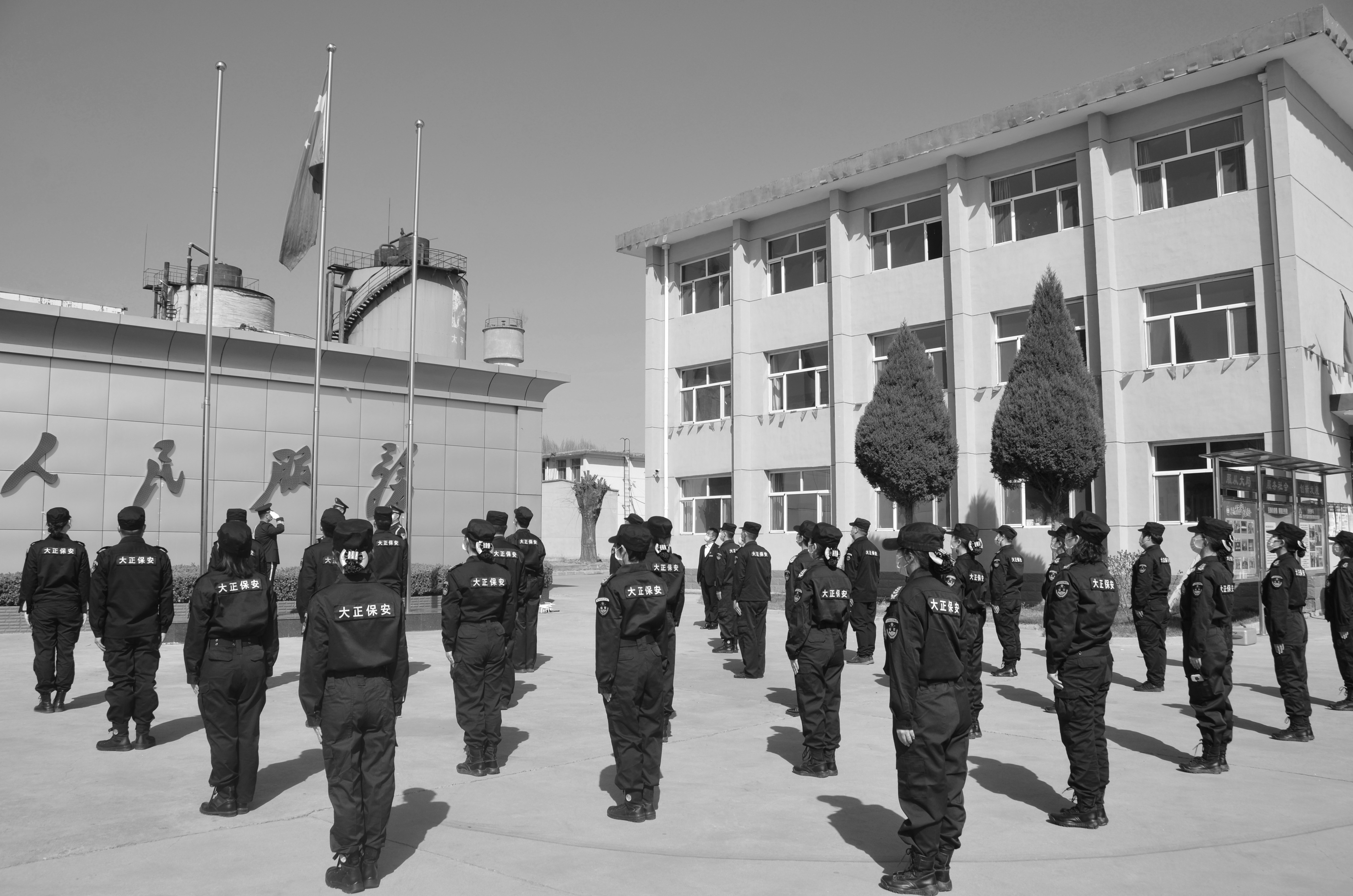 (公司在悼念活動(dòng)中,舉行升國(guó)旗儀式)