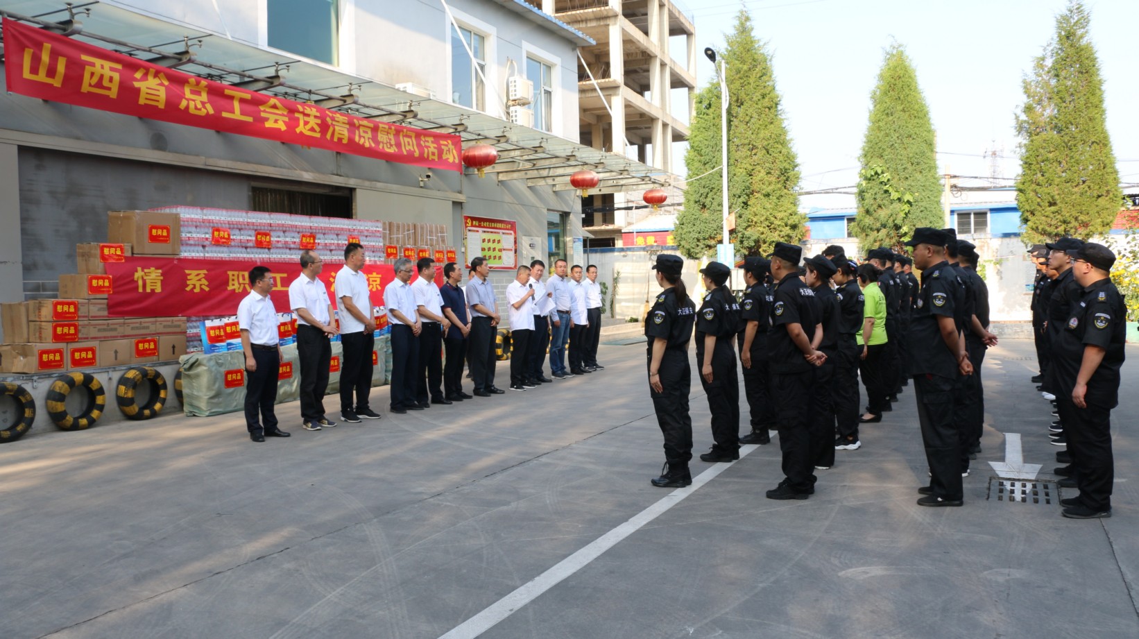 7月27日下午,省、市兩級(jí)總工會(huì)領(lǐng)導(dǎo)蒞臨我公司舉行“夏季送清涼”慰問活動(dòng),為堅(jiān)守在一線的職工朋友們送上夏日的關(guān)懷與問候,同時(shí)為職工朋友們贈(zèng)送一批防暑用品和對(duì)公司困難職工進(jìn)行慰問。省總工會(huì)黨組成員、副主席張亞琳;省總工會(huì)經(jīng)濟(jì)技術(shù)部副部長高偉;市人大副主任、市總工會(huì)主席魏廣才;市總組黨組書記、常務(wù)副主席王書鴻;市總工會(huì)副主席曲文斌;市總工會(huì)副主席左文蕾;公司黨政班子成員參加此次活動(dòng);顒(dòng)由山西大正保安服務(wù)有限公司黨委書記、董事長張躍生主持。