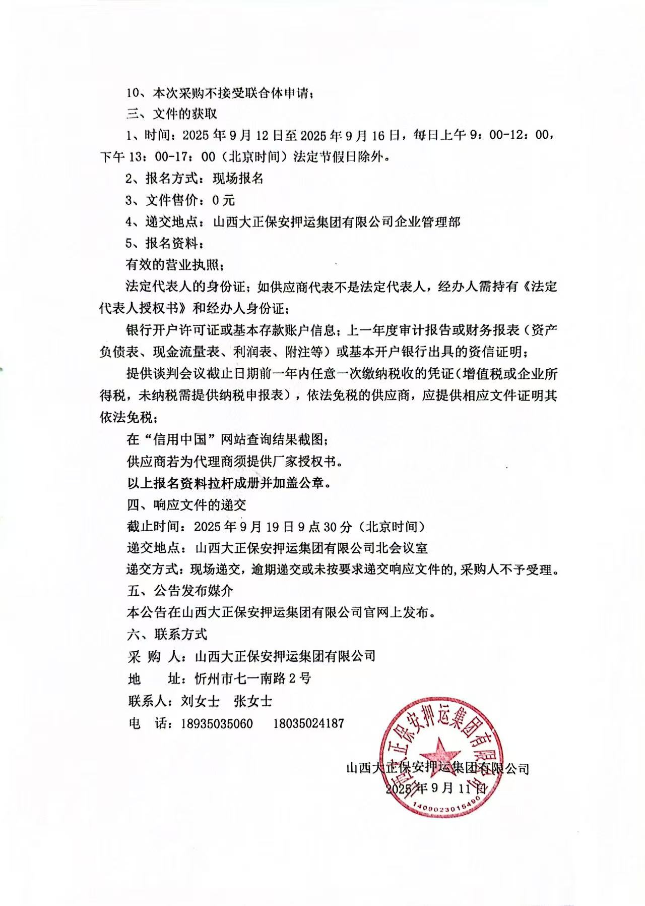 山西大正保安押運(yùn)集團(tuán)有限公司
