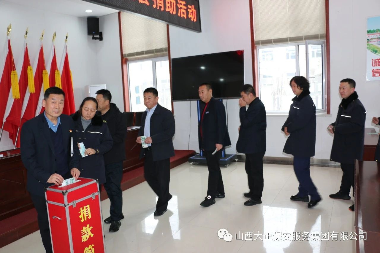 善舉映照初心,愛(ài)心凝聚力量。12月15日,在山西大正保安服務(wù)集團(tuán)有限公司會(huì)議室開(kāi)展2023年“送溫暖,獻(xiàn)愛(ài)心”捐助活動(dòng)。此項(xiàng)活動(dòng)是黨中央、國(guó)務(wù)院倡導(dǎo)開(kāi)展的一項(xiàng)公益活動(dòng),是省委省政府、市委市政府的工作要求,是集團(tuán)公司黨委以實(shí)際行動(dòng)落實(shí)主題教育轉(zhuǎn)化要求的一項(xiàng)舉措。集團(tuán)公司領(lǐng)導(dǎo)班子成員及員工參加了此次活動(dòng),由集團(tuán)公司黨委副書(shū)記、董事、副總經(jīng)理陳志平主持