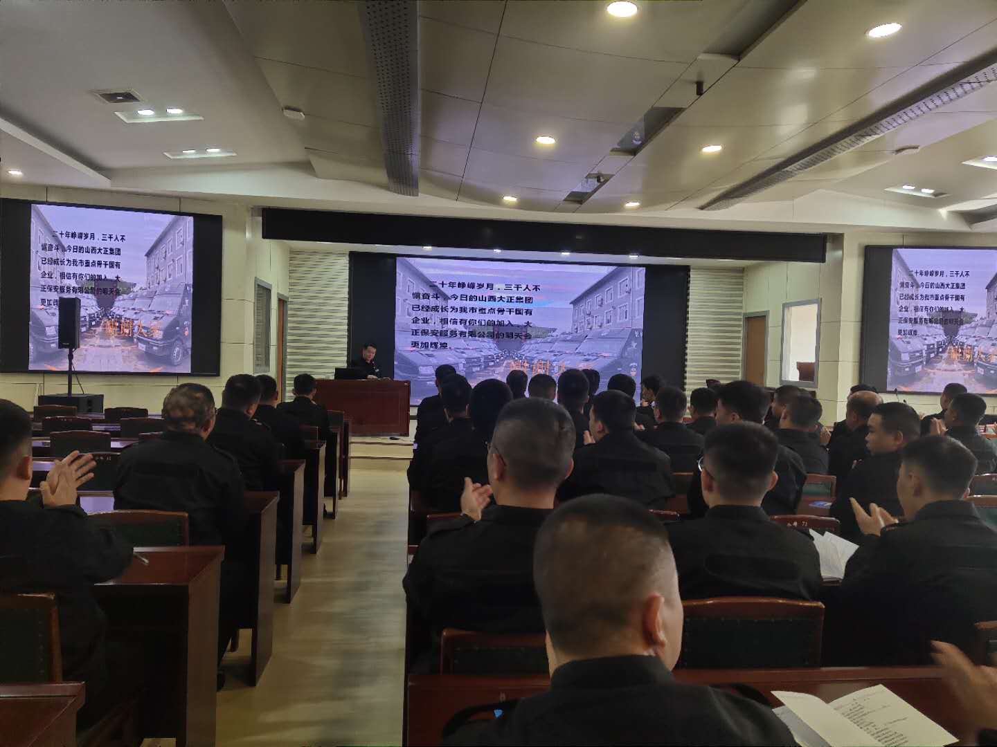 宣講是企業(yè)文化建設(shè)的關(guān)鍵環(huán)節(jié),為了使新員工盡快了解我公司的基本概況和發(fā)展歷程,讓員工根據(jù)自己的優(yōu)勢在工作崗位上準(zhǔn)確定位發(fā)光發(fā)熱,同時更好的貫徹公司“服從大局、服務(wù)社會、創(chuàng)新發(fā)展”的服務(wù)理念,打造一支素質(zhì)高、紀(jì)律硬,業(yè)務(wù)強(qiáng)的保安隊伍。10月20日上午,在公司組織的新員工第五十期培訓(xùn)會上,集團(tuán)公司總經(jīng)理助理、辦公室主任宋林兔為新員工進(jìn)行了——山西大正保安服務(wù)集團(tuán)有限公司發(fā)展歷程及遠(yuǎn)景規(guī)劃【二十年奮斗 、二十年輝煌】主題宣講活動。