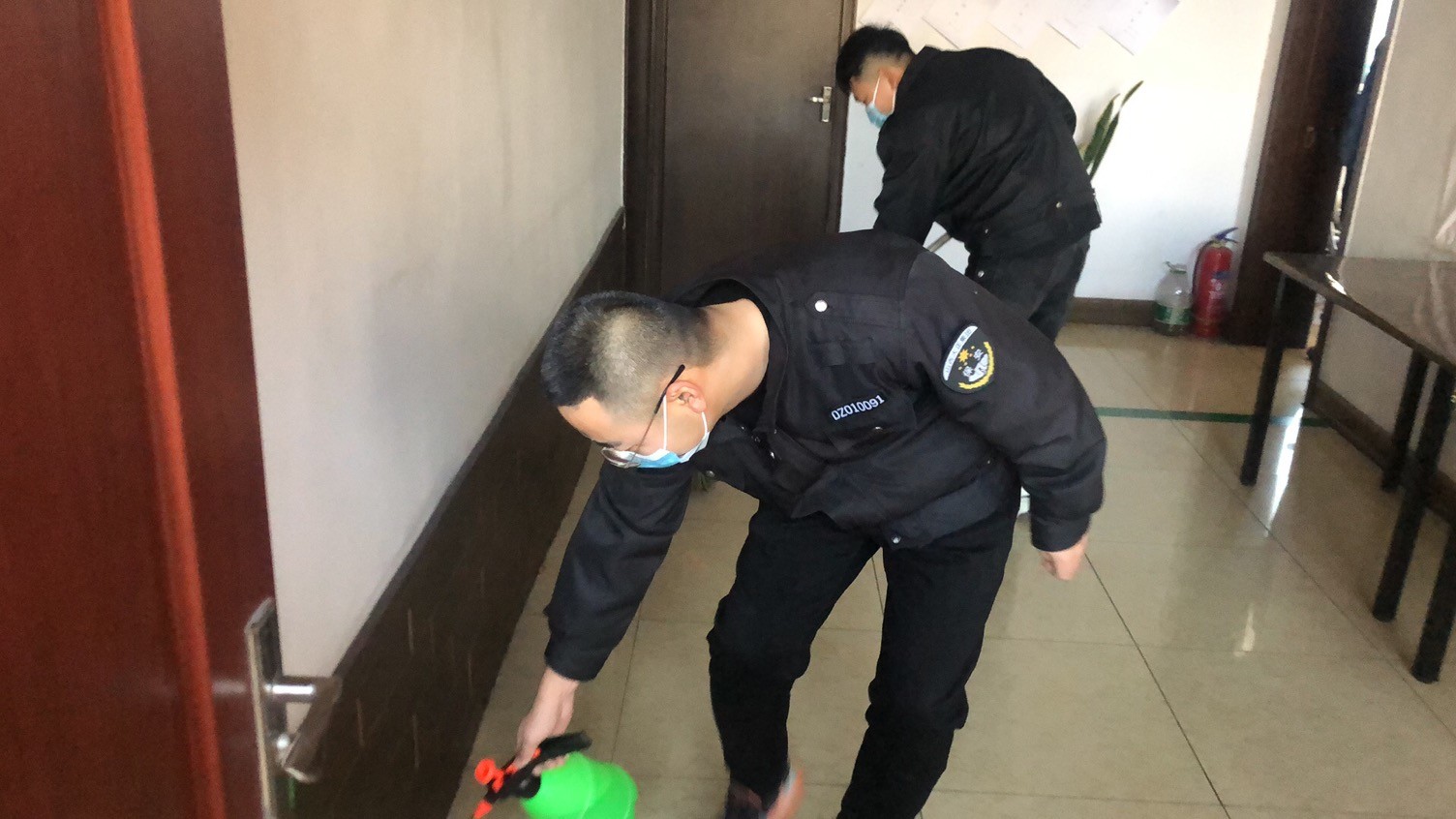 在集體學(xué)習(xí)集團(tuán)公司文件后,張小平要求:一是加強(qiáng)衛(wèi)生知識(shí)宣傳。利用微信群、電子屏、宣傳欄等廣泛宣傳疫情防控衛(wèi)生健康知識(shí),號(hào)召全體監(jiān)控人員養(yǎng)成講衛(wèi)生、愛(ài)衛(wèi)生、勤洗手等良好的個(gè)人衛(wèi)生習(xí)慣,做好自我防護(hù)工作。自覺(jué)佩戴口罩、手套,勤洗手、勤消毒、勤通風(fēng),不斷提高自身免疫力和抵抗力。二是嚴(yán)抓環(huán)境衛(wèi)生整治。組織在崗人員全面清理站區(qū)內(nèi)所有部位環(huán)境衛(wèi)生。對(duì)監(jiān)控室、食堂、衛(wèi)生間等進(jìn)行清潔打掃,做到無(wú)死角、無(wú)盲區(qū)。加大清掃頻次,減少垃圾滯留時(shí)間,鏟除病毒生存空間。尤其對(duì)肢體接觸頻繁的門(mén)把手、洗手臺(tái)、水龍頭等部位做到重點(diǎn)消毒、反復(fù)擦拭,確保不放過(guò)任何一個(gè)遺漏部位。食堂工作人員每天對(duì)食堂、操作間、庫(kù)房等衛(wèi)生進(jìn)行徹底打掃和清洗,及時(shí)清理廚房垃圾。三是嚴(yán)格做好自身防護(hù)。上崗前由組長(zhǎng)檢查上崗人員手套、口罩等防護(hù)用品的佩戴情況,佩戴不規(guī)范的及時(shí)糾正。各科室加強(qiáng)檢查,對(duì)在崗期間未嚴(yán)格佩戴防護(hù)用品人員嚴(yán)格規(guī)定。四是“堅(jiān)守安保崗位,及時(shí)監(jiān)督警示,真誠(chéng)服務(wù)到位,助力戰(zhàn)“疫”完勝。”監(jiān)控中心日常工作就比較繁重,監(jiān)控、核查、布防、撤防、登記、提示等,24小時(shí)的值守。在人員緊張的情況下,通過(guò)語(yǔ)音呼叫對(duì)講及時(shí)提醒庫(kù)內(nèi)人員戴好口罩、禁止吸煙等情況。簡(jiǎn)潔的話語(yǔ),誠(chéng)摯的提醒,在防控冠狀病毒嚴(yán)峻形勢(shì)下,監(jiān)控中心沒(méi)有一名員工退縮。
