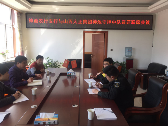 4月2日,守押神池中隊(duì)受邀與農(nóng)行神池支行召開聯(lián)席會議。該行主管安全保衛(wèi)工作的鄧步云書記主持會議,守押神池中隊(duì)中隊(duì)長、副中隊(duì)長、安全員和該行辦公室、營業(yè)部、ATM加清鈔等部門負(fù)責(zé)人參加會議。